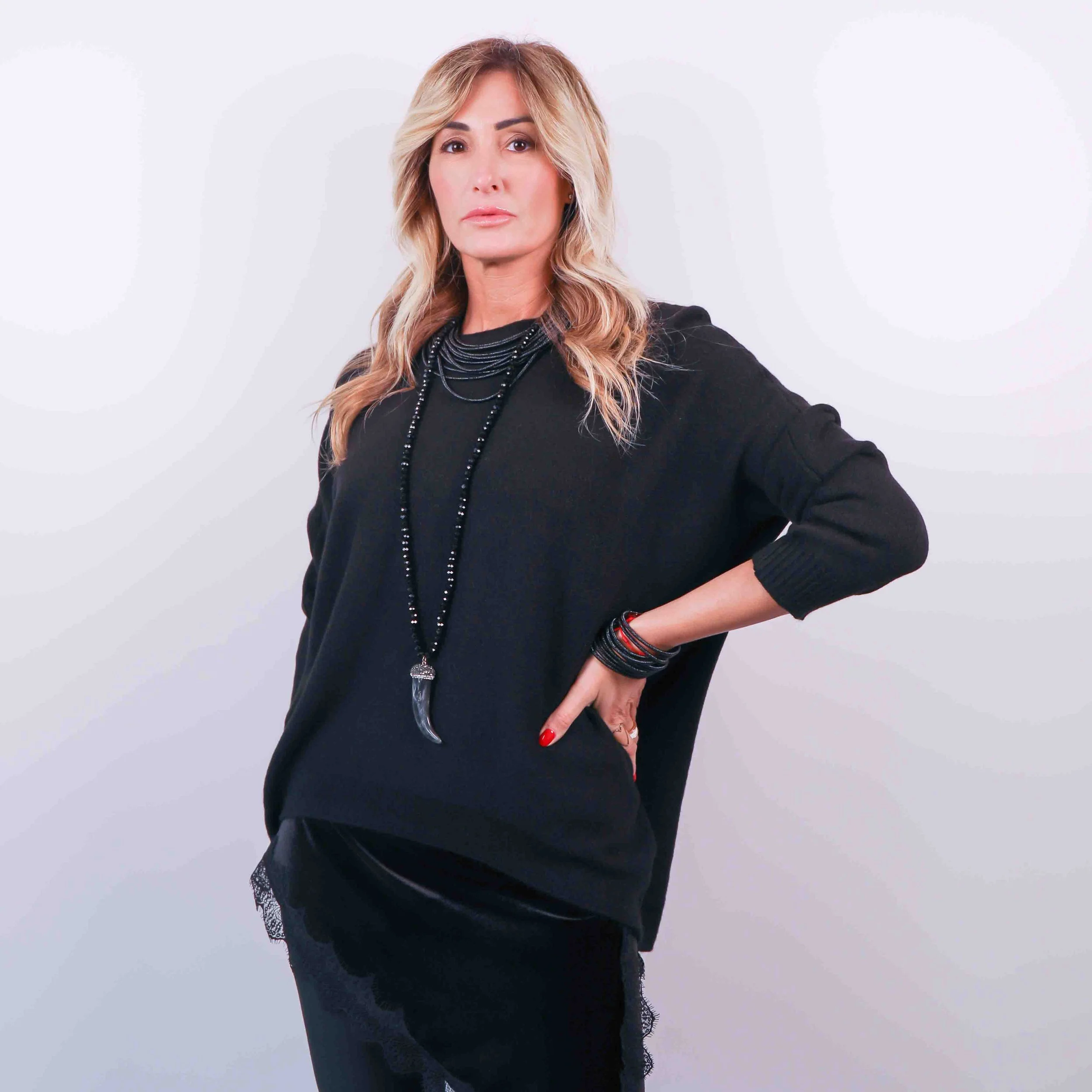 Dettagli: bordo in pizzo, orlo asimmetrico